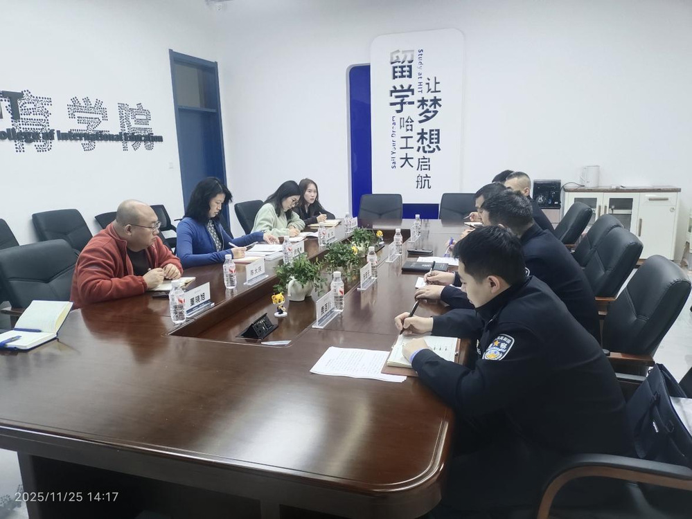 (董曉旭/文)為深化校警聯動機制,精準對接涉外服務需求,助推學校國際化教育高質量發展,11月25日,哈爾濱市公安局出入境管理局局長趙洪偉一行到訪我校國際教育學院開展交流,會議由國際教育學院院長趙異肖主持,國際教育學院相關人員參會。To deepen the campus-police collaboration mechanism, precisely addressforeign-related service demands, and boost the high-quality development of the university’s international education, on November 25, a delegation led by Zhao Hongwei, Director of the Exit-Entry Administration Bureau of Harbin Public Security Bureau, paid a visit tothe Collegeof International Education(CIE)of HIT.